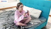 Вместо игры на телефоне очкастая тёлочка поигралась толстым членом приятеля