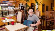 Вместо того, чтобы разносить кофе, негритянка присела пиздой на хуй клиента
