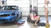 Сиськатая фифа облизала автомеханику жопу и дала поебаться