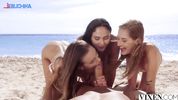 Три тёлочки и один хуй устроили поебуху прямо на берегу синего моря