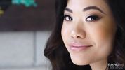 Большая глотка красивой азиатки поглощает огромный член зрелого самца, который ебет дырки малышки