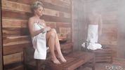 Шикарная блонда дала в сауне незнакомцу, и он жарил её во все дырки, так его завела эта шлюха