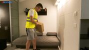 Описание:Какая-то итальянская дура заказала на дом новые туфли. Заказать – заказала, а запасти достаточно денег забыла! Впрочем, это вовсе не обескуражило сучку, ведь ей достаточно просто надеть туфли на свои стройные ножки и показать курьеру свою голую бритую письку. У чувака от таких видов сразу же зачесался хуец и он получил, что хотел – и минетик, и еблю весьма симпатичной девчули. За такие скромные бабки итальянец бы и кобылу оттрахал, а тут такая классная бикса ему на залупу залезла!