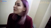 Описание:Синеволосая шмара торчит под подъездом: доставка ей всё привезла, а занести стройматериалы на верхотуру баба не хочет - сидит, дожидается мужа. Хорошо, что сосед предложил ей помочь и всё справно занёс, куда надо. Благодарная шлюха пообещала ему благодарность и честно слово сдержала: полезла парню в штаны, достала хуй и соснула, как будто бы она свободная и незамужняя дама.